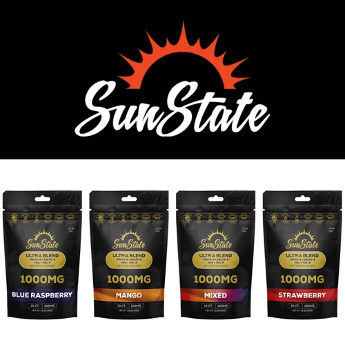 The Ultra Blend Extra Strength Infused Gummies 10ct 1000mg by Sun State Hemp offers a delicious and convenient edible experience. Suggested retail price $29.99. Ships directly from manufacturer. Edibles are a top-growing category — keep your shelves stocked. Available at wholesale pricing from Port City Wholesale.