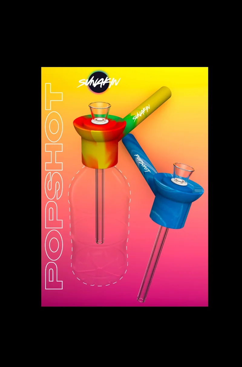The compact, ultra portable, and durable POPSHOT by Sunakin is a funky, on-the-go water bong that’s fun to use! The body of the POPSHOT is made of lightweight silicone and the removable downstem and bowl are made of borosilicate glass. To use the POPSHOT, get yourself a standard pop bottle, add some water, and attach the device to the bottle’s opening so the downstem is partially submerged. Then simply load the glass bowl with your ground herbs, light up, and take your hit from the silicone pipe that’s adorned with the SUNAKIN logo. Measuring 5.3”L x 1.97”H in size, the Sunakin POPSHOT fits into a backpack for easy transport when you want to use it for having some fun in the sun! The POPSHOT is available in a wide range of fantastic colors.