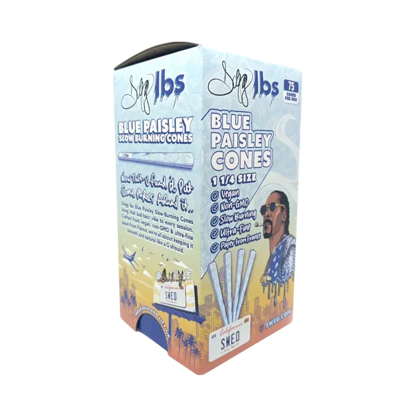 Dogg LBS 1 1/4 Size Cones (75 Pack) Discerning customers seek performance without compromise. The wholesale Blue Paisley Dogg LBS 1-1/4" Pre-Rolled cones deliver exceptional convenience for hassle-free sessions. These meticulously crafted pre-rolled cone papers eliminate the rolling process entirely—your clientele simply fills and enjoys, making them an ideal inventory addition for retailers and smoke shops. Crafted from ultra-fine, slow-burning French paper , these vegan, non-GMO Blue Paisely DOGG LBS Cones offer a clean, even burn. These 1-1/4" cones are designed for efficient filling and come in a striking blue paper with a paisley design, ensuring a memorable experience every time. Blue Paisley DOGG LBS 1.25" Pre-Filled Cones 1 1/4 Size Cones: Compact, smooth, and perfect for personal use. Ready-to-Fill: No rolling needed—just pack and enjoy. Ultra-Fine & Slow-Burning: French-made paper for a clean hit. Vegan & Non-GMO: Crafted for purity and performance. Signature Paisley Design: Unique blue paper with a classic pattern. 75 Cones Per Box