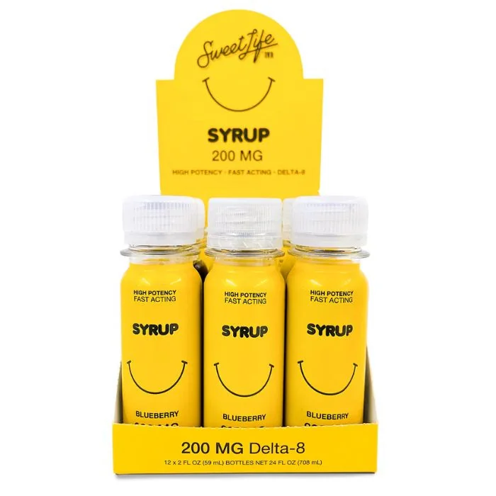 Delta-8 Syrup is hemp-derived and extra potent. Effects are fast-acting and long-lasting. Sweet Life's Syrup includes 200mg of Delta-8 per 2 oz bottle and is marked for easy dosing — giving you ten 20mg doses per bottle. A case contains 12 bottles.