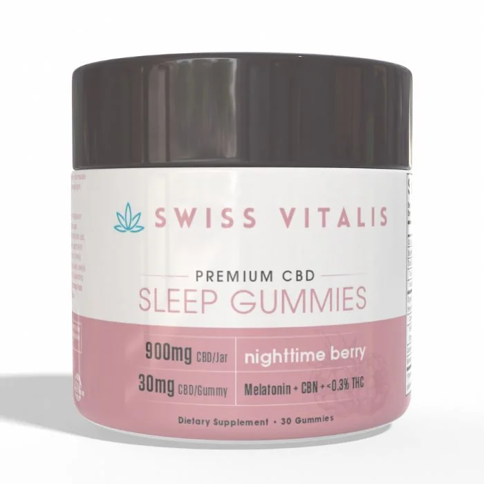 Drift into deep, restorative sleep with Swiss Vitalis CBD Sleep Gummies. Each gummy delivers a carefully balanced blend of 30mg CBD, 1mg THC, 3mg CBN, and 3mg melatonin, working together to promote relaxation and support a healthy sleep cycle. ✔ Full-Spectrum Formula – Harness the entourage effect for maximum benefits✔ Melatonin & CBN Boost – Supports natural sleep patterns✔ Delicious Tart Berry Flavor – Enjoy a tasty bedtime treat✔ Vegan & Gluten-Free – Made with all-natural ingredients✔ USA-Grown Hemp – Third-party tested for purity and potency Wake up refreshed and ready for the day. Try Swiss Vitalis CBD Sleep Gummies today for a better night’s sleep!