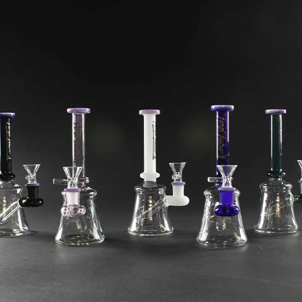 Standing just over 7″ tall, the Colored Handbells come in 5 colors: Black, White, Green, Blue, or Pink, each with a 14mm female joint and glass slide. Waterpipe Dimensions: Height: 7.25″ Base: 2.75″ Mouthpiece: 1.25″