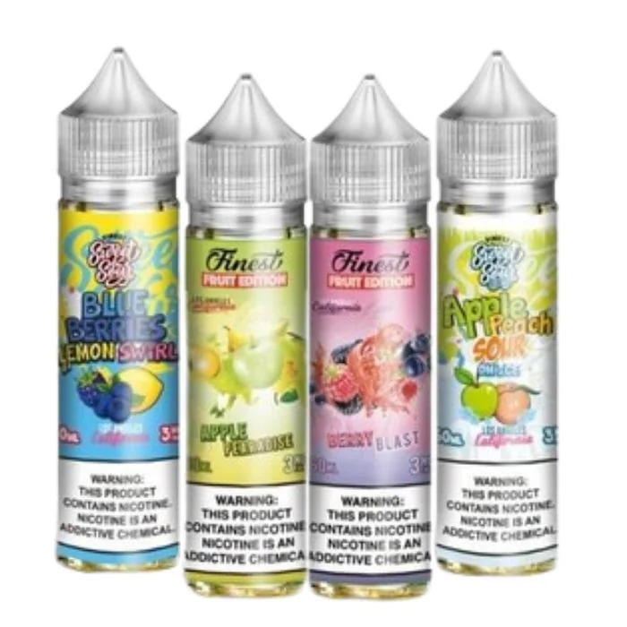 Discover The Finest E-Liquid, a premium collection designed to enhance your vape experience. Available in three nicotine strengths: 0MG, 3MG, and 6MG, these expertly crafted flavors cater to every palate. Choose from a variety of sweet, sour, and refreshing profiles, includes 2 bottles. Flavors: Apple Peach Sour – A tantalizing mix of tart apples and juicy peaches. Apple Peach Sour on Ice – The same sweet-sour blend, now with a cool menthol twist. Apple Pearadise – Crisp apples and ripe pears come together for a heavenly combination. Apple Pearadise Ice – Chilled apple-pear delight with an icy finish. Banana Honey – Sweet bananas drizzled with golden honey. Berry Blast – A medley of mixed berries, bursting with flavor. Berry Blast Ice – A frosty take on the classic berry mix. Blue-Berries Lemon Swirl – Blueberries and zesty lemon create a tangy swirl. Blue-Berries Lemon Swirl on Ice – A cooling spin on the blueberry-lemon duo. Cool Mint (Spearmint) – Refreshing spearmint for a clean, crisp vape. Cotton Clouds – Light and sweet, reminiscent of cotton candy. Green Apple Citrus – Tart green apples meet tangy citrus for a fresh zing. Lemon Custard – Rich, creamy custard with a hint of lemon. Lemon Lush – A lush burst of bright lemon sweetness. Lychee Dragon – Exotic lychee blended with bold dragon fruit. Mango Berry – Tropical mango with a sweet berry fusion. Mango Berry Ice – A cool, refreshing version of the mango-berry blend. Strawberry Chew – Sweet, chewy strawberry candy flavor. Strawberry Custard – Creamy custard infused with ripe strawberries. Strawmelon Sour – Sweet strawberries and watermelon with a tangy kick. Strawmelon Sour on Ice – A cool, mentholated version of the strawberry-watermelon blend. Tiramisu Custard – A rich, creamy custard with layers of coffee and dessert flavors. V.C.T (Vanilla Custard Tobacco) – Smooth to