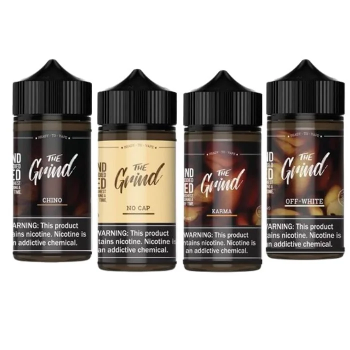 The Grind E Liquid is a premium coffee-inspired vape juice offering a satisfying blend of bold cappuccino and espresso flavors. Available in 100ml bottles, this e-liquid is crafted for smooth, rich clouds with every puff. Choose from nicotine strengths of 0MG, 3MG, or 6MG, depending on your preference. Ideal for coffee lovers, The Grind E Liquid delivers the essence of your favorite brews in each vape session, providing an immersive experience that satisfies every time. The Grind E Liquid Features: Bottle Size: Available in generous 100ML bottles. Nicotine Strengths: Choose from 0MG, 3MG, or 6MG to match your preference. Flavor Profile: Inspired by premium coffee, featuring bold notes like cappuccino and espresso. Smooth and Satisfying: Crafted for a consistently rich and enjoyable vape experience. Perfect for Coffee Lovers: A go-to choice for those who crave the essence of their favorite brews. The Grind E Liquid Flavors: Chino: A tantalizing blend of creamy vanilla and rich espresso, delivering a smooth and indulgent vaping experience. Karma: Indulge in a tropical paradise with notes of ripe mangoes and juicy pineapple, creating a refreshing and fruity vape sensation. No Cap: Experience the boldness of mixed berries fused with cool menthol, providing a crisp and exhilarating vaping adventure. Off White: Delight in a classic flavor combination of sweet strawberries and velvety cream, offering a satisfyingly sweet vape. The Grind E Liquid Wholesale: For vape shops looking to serve coffee lovers, The Grind E Liquid Wholesale is a must-have. With bold cappuccino and espresso notes, The Grind E Liquid Wholesale delivers a rich, smooth vaping experience in 100ml bottles. Whether your customers are seasoned vapers or coffee enthusiasts, this flavor profile is perfect for any palate. Available in 0MG, 3MG, and 6MG nicotine strengths, these high-quality e-liquids are designed for all-day satisfaction and long-lasting enjoyment.