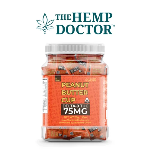 The Hemp Doctor - D9 Peanut Butter Cups 75mg 1ct (Tub of 20) *Drop Ship* (MSRP $8.95 Each)