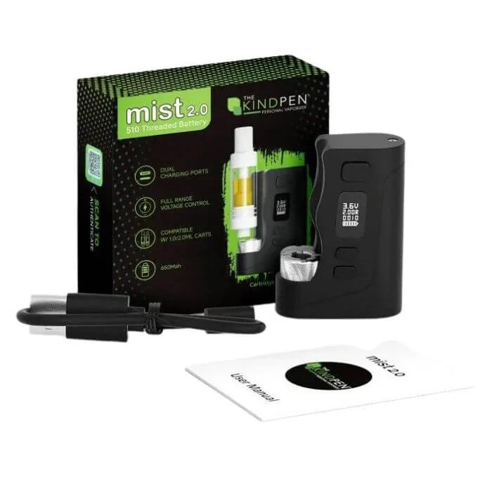 Introducing Mist 2.0, the upgraded version of our beloved Mist vaporizer, offering enhanced features and improved performance for an unparalleled vaping experience. Versatile and convenient, Mist 2.0 is compatible with both essential oils and e-liquids, catering to diverse vaping preferences. The Kind Pen The Mist 2.0 510 Thread Battery Features: Adjustable Voltage: Fine-tune your vaping experience with multiple voltage settings for optimal flavor and vapor. Compact & Portable: Sleek design fits easily in your pocket or bag, ideal for vaping on the go. High-Quality Construction: Durable and stylish, made from premium materials for a modern look. Easy to Use: Simple one-button operation for hassle-free vaping.