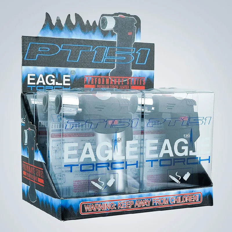 Looking for a quality lighter? The EAGLE TORCH DISPLAY OF 6CT (PT151) delivers on both form and function. Crafted with quality materials to withstand daily use, it is a staple lighter that belongs in every smoke shop. Port City Wholesale offers this product at competitive wholesale pricing with fast shipping.