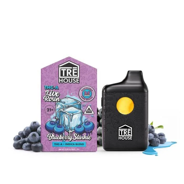Introducing the Tre House Live Rosin THCA Vape Pen, a powerhouse of terpene-infused flavor and potent cannabinoids, delivering an unparalleled vaping experience. Each pen contains a robust 3.5g blend of THCA, Delta 8 THC, Delta 9 THC, and THC-P, offering around 1,400 blissful puffs. Perfect for extended sessions, the Tre House vape pen ensures your "Punch Party" lasts for a long time. Available in packs of 6 units, each flavor offers a unique experience, making it an excellent choice for vape enthusiasts. Product Details: Quantity: 3.5g per pen, 6 units per pack Cannabinoids: THCA, Delta 8 THC, Delta 9 THC, THC-P Hits per pen: Approximately 1,400 hits Flavors: Blueberry Slushie – A cool, refreshing mix of sweet blueberries with a frosty, slushie twist. Grape Guava Punch – A bold blend of juicy grape and tropical guava, delivering a sweet and tangy punch. Texas Peach Cobbler – A warm, buttery dessert flavor featuring ripe Texas peaches and a hint of cinnamon. With the Tre House Live Rosin THCA Vape Pen, you're guaranteed a smooth, flavorful, and potent vaping experience. Perfect for those seeking quality and longevity in every puff!