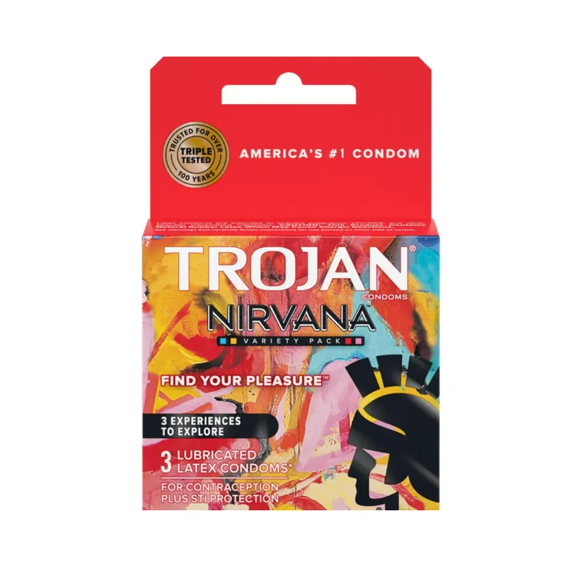 Discover new sensations with TROJAN NIRVANA VARIETY PACK 3CT LUBRICATED LATEX CONDOMS PACK OF 6. This variety pack offers a selection of uniquely designed condoms, each crafted to enhance pleasure and provide a different experience. Made from premium latex and lubricated for comfort, the TROJAN NIRVANA condoms combine trusted protection with exciting new sensations. Each pack contains 3 assorted condoms, allowing you to explore a variety of options. This set includes 6 packs, making it ideal for