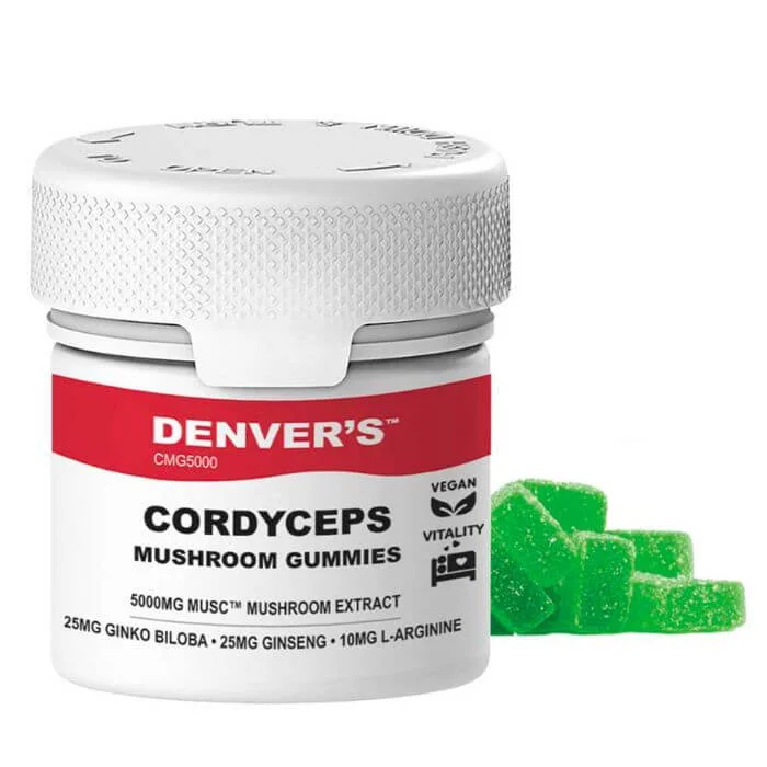 Denvers Mushroom Gummies Cordyceps Each pack includes 10 water-soluble gummies, packed with 5000mg of potent content. Formulated with Cordyceps MUSC™ Extract, Ginkgo Biloba, Ginseng, and L-Arginine, these gummies provide an invigorating blend for enhanced vitality. Cordyceps, known for its adaptogenic properties, may help support stamina and endurance, while Ginkgo Biloba and Ginseng are renowned for their cognitive and energy-enhancing benefits. L-Arginine complements the formula to promote overall cardiovascular health. The water-soluble MUSC™ extract ensures optimal absorption, offering a premium experience for your customers. With wholesale options available, these gummies are an excellent addition to your product range, catering to customers seeking a natural energy boost and vitality support. Give your customers the power of Cordyceps and elevate your inventory with Denvers Mushroom Gummies Cordyceps. Energize your business with this sought-after product that delivers both taste and benefits. Denvers Mushroom Gummies Cordyceps Features: 10 Gummies - 5000mg Water soluble MUSC™ extract Best value on the market. Cordyceps MUSC™ Extract - 500mg each 25mg Ginko Biloba 25mg Ginseng 10mg L-Arginine