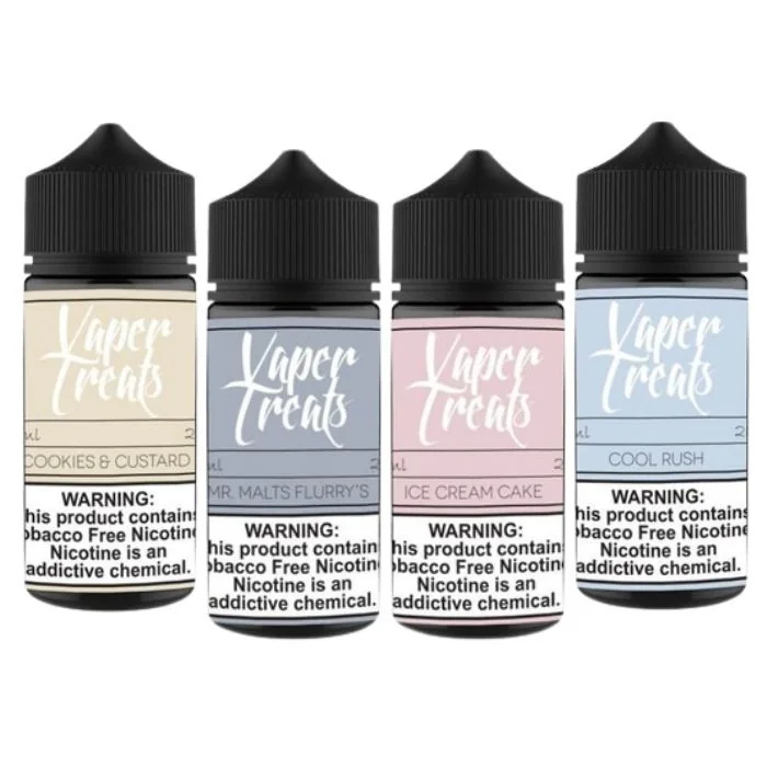 Indulge in the delightful world of Vaper Treats E-Liquids, available in 60ml and 100ml bottles. Crafted with premium ingredients, these flavors come in nicotine strengths of 0MG, 2MG, 4MG, and 6MG, allowing you to customize your vaping experience. Perfect for vape enthusiasts who love rich, dessert-inspired flavors. Flavors: Cinna-Fun: A warm cinnamon pastry swirled with sweet icing. Cookies & Custard: Smooth vanilla custard blended with crunchy cookie bits. Cool Rush: Refreshing menthol for a crisp and cool vape. Ice Cream Cake: Creamy ice cream layered with cake crumbles. Mr. Malts Flurry’s: Classic milkshake with a blend of vanilla and malt. Pebbles Cheesecake: Fruity pebbles on a rich cheesecake base. Pixy Dip: Sweet and tangy candy powder flavor. Strawberry Cookie Butter: Buttery cookie dough mixed with ripe strawberries. The Cupcake Man Blueberry: Moist vanilla cupcake topped with blueberry frosting. The Cupcake Man Strawberry: A fluffy cupcake topped with sweet strawberry icing. Elevate your vaping with these irresistible e-liquid flavors!