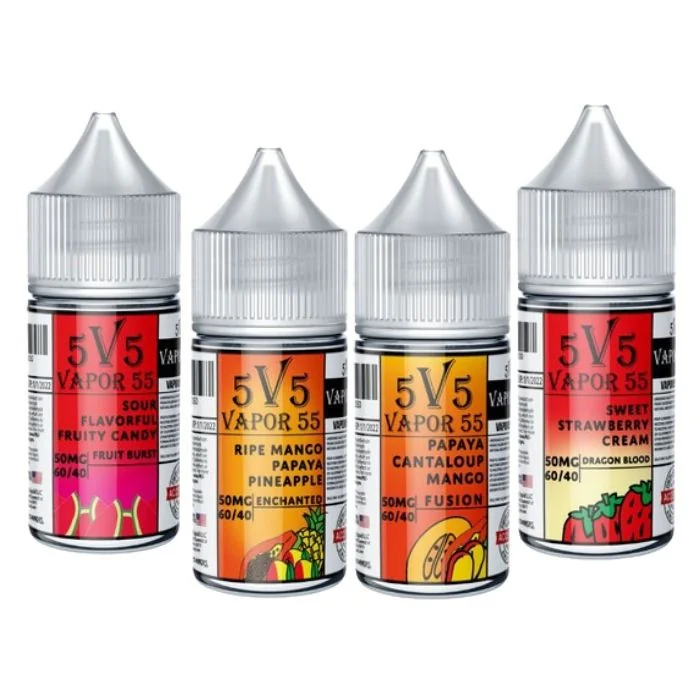 Experience bold, fruity flavors with Vapor 55 Fruits Nicotine Salts. Available in a 30ml bottle, these nicotine salts come in two strengths: 35MG and 50MG, catering to vapers who prefer a strong nicotine hit. Each flavor is crafted to deliver a smooth and satisfying experience with every puff. Flavors: Dragon Blood – Sweet strawberry cream. Enchanted – A tropical mix of ripe mango, papaya, and pineapple. Fusion – Exotic blend of papaya, cantaloupe, and mango. Fruit Burst – A burst of sour, fruity candy goodness. Honey Blossom – Refreshing mix of pear, kiwi, honeydew, and strawberry. Illusion – Juicy blend of pineapple, watermelon, and grape. Peachberry – Juicy peach combined with ripe berries. Purple Rain – Super grapes mixed with watermelon. Sorcerer – Cool blend of watermelon, grape, and ice. Spaced Out – A medley of raspberry, blueberry, and strawberry. Tiger's Blood – A refreshing strawberry snow cone flavor. Unicorn – Classic, creamy strawberry milk. Indulge in these fruity flavors and enjoy a delightful nicotine experience designed for vape enthusiasts.