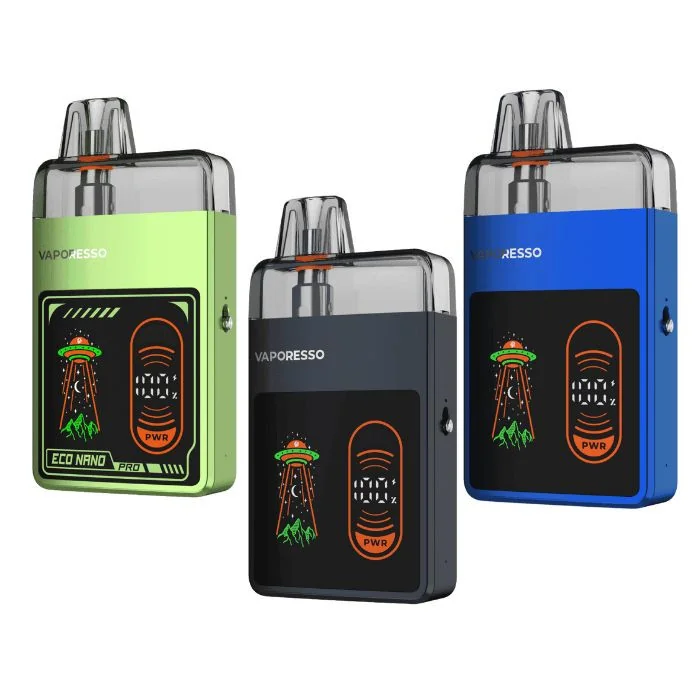The Vaporesso Eco Nano Pro is designed for those transitioning from disposables to a more versatile vaping experience. Equipped with a 6ml 0.6Ω mesh pod and COREX SMOOTH technology, it delivers consistent flavor and extended pod life. Its large, dynamic display provides interactive animations and a precise battery indicator. A side switch enables easy control of airflow and output mode, while the long-lasting 1000mAh battery ensures reliable performance. Compatible with ECO Nano Pods, this device offers smooth flavor, convenience, and power in one sleek design. Key Features: Dimensions: 44.7mm x 18mm x 87.8mm Battery: Built-in 1000mAh Charging: Type-C, 1A Pod Capacity: 6mL Resistance: 0.8Ω COREX Heating Tech for smoother, longer-lasting flavor SSS Leak-Resistant Technology Large Display with interactive animations Side Switch for airflow and output control ECO/POWER Modes for optimized performance Compatible with ECO Nano Pods Pulse Mode for powerful boosts 13000 Puffs with one pod Experience performance and convenience with the Vaporesso Eco Nano Pro, tailored for superior flavor and lasting use.