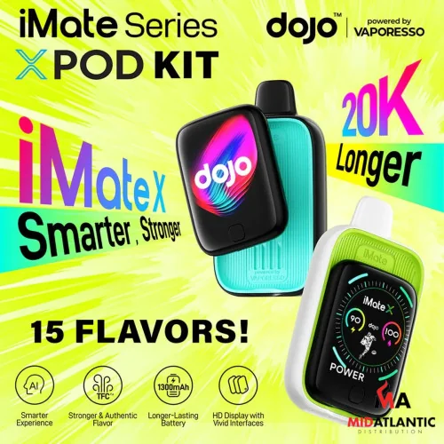 Vaporesso iMate X 20K Puffs 50mg 16mL Pod Replacement Disposables *Pack of 5* by the manufacturer. A sleek disposable vape engineered for rich flavor and satisfying vapor production. Draw-activated firing, leak-resistant design, and consistent hits from first to last.