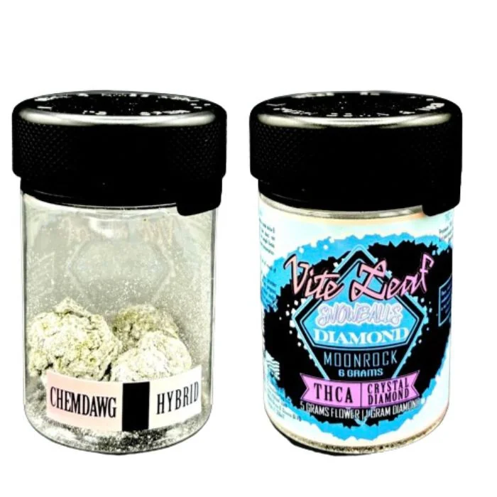 Discover the epitome of potency and flavor with our signature "THCA Crystal Diamond Moon Rock." Crafted with precision, this product harmoniously blends THCA crystals, moon rock cannabis flower, and occasional enhancements like kief or hash oil. Each 6-gram package features moon rock THCA flower, a concentrated form of AAA Hemp flower, paired with 1 gram of THCA crystal diamonds, denoted by our prestigious "AAA PLUS" rating for superior quality. Renowned for their potency, THCA crystal diamonds boast exceptionally high THCA levels, the non-psychoactive precursor to THC. Our moon rock flower undergoes a meticulous process, where THCA buds are delicately coated with liquid diamond and rolled in kief, resulting in a flavorful and robust product. THCA Flower ranges from 28% to 34%, showcasing the pinnacle of potency. Each strain in our collection offers a unique aroma and sensation: Chemdawg Hybrid: Experience the distinct essence and effects of this hybrid strain. Original Glue/Indica: Indulge in the relaxing embrace of this indica variety. Godfather OG/Indica: Dive into the deep relaxation offered by this indica strain. Wedding Cake Hybrid: Enjoy the balanced characteristics of this hybrid strain. Super Silver Haze Sativa: Elevate your senses with the energizing properties of this sativa strain. Durban Poison Sativa: Embrace the uplifting and euphoric effects of this sativa strain. Explore the spectrum of sensations and aromas with our diverse selection of strains.