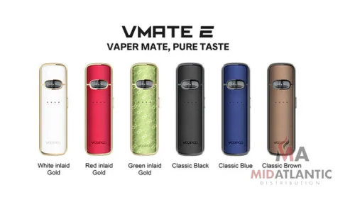 Discover the Voopoo Vmate E Pod System 1200mAh Kit w/ 2 Refillable 3mL Replacement Pods. This versatile pod is built to handle everything from casual sessions to extended use. Compact, powerful, and easy to maintain — it is a smart addition to any vape inventory. Wholesale orders available at Port City Wholesale.