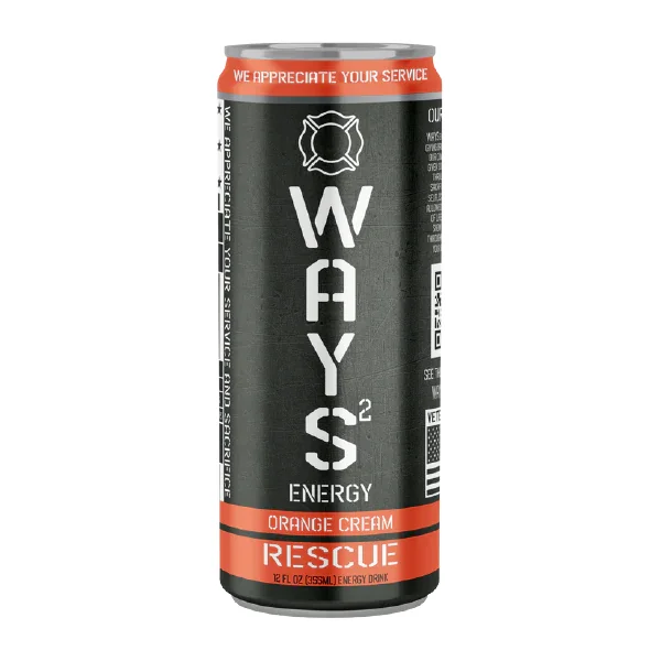 WHOLESALE WAYS ENERGY DRINK 12-pack Wholesale WAYS RESCUE Energy Drink is a orange cream flavored flavored energy drink that pays tribute to the brave firefighters of our great nation. Proceeds are donated to charities that support active and retired firefighters are generated by each bulk order and wholesale case purchase. Local vape shops, smoke shops, and convenience stores can now buy wholesale Ways Energy cases at Mi-Pod. We are proud to partner with WAYS, standing by both the quality and the mission behind this outstanding wholesale energy drink. Each of the WAYS flavors pay tribute to a different group of service members: RESPOND (Peach Pomegranate) Law Enforcement REVIVE (Cherry Limeade): EMS and Medical Workers RESCUE (Orange Cream): Firefighters ENGAGE (Sour Lime): Military and Veterans SUPPORT: (Peach) for the 5th Squad Charity. WAYS Energy was founded by a group of veterans, law enforcement officers and fire fighters who have a deep commitment to the community and providing value with the best possible energy drink at a reasonable price. WAYS RESCUE (Orange Cream) Flavor Profile: A sweet and refreshing orange cream flavor that is packed with energy but packs a classic flavor punch. Enhanced Performance: 200mg of caffeine, fortified with electrolytes to keep you hydrated and alert. Quality Ingredients: No sugar, no artificial colors – just a pure, delicious energy boost. Mission: WAYS RESCUE Energy Drink is dedicated to supporting active and retired firefighters and their families.