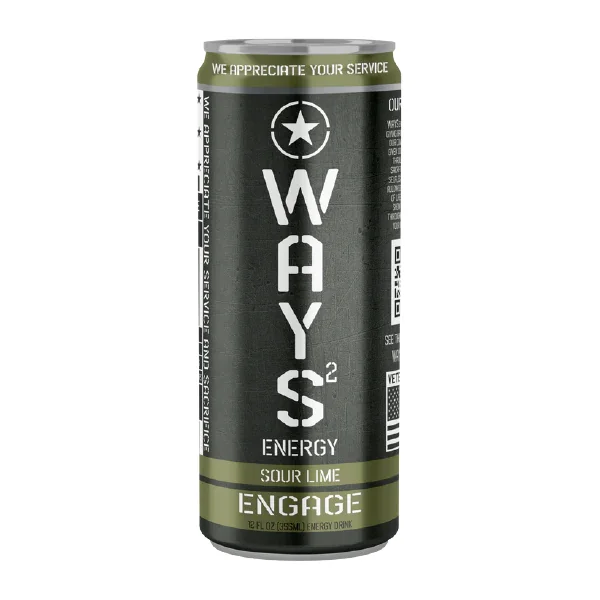 WHOLESALE WAYS ENERGY DRINK 12-pack Wholesale WAYS ENGAGE Energy Drink is a delicious sour lime flavored energy drink that pays tribute to the armed forces, through both its quality and the charitable donations generated by each bulk order and wholesale case purchase. Local vape shops, smoke shops, and convenience stores can now buy wholesale Ways Energy cases at Mi-Pod. We are proud to partner with WAYS, standing by both the quality and the mission behind this outstanding wholesale energy drink. Each of the WAYS flavors pay tribute to a different group of service members: RESPOND (Peach Pomegranate) Law Enforcement REVIVE (Cherry Limeade): EMS and Medical Workers RESCUE (Orange Cream): Firefighters ENGAGE (Sour Lime): Military and Veterans SUPPORT: (Peach) for the 5th Squad Charity. WAYS Energy was founded by a group of veterans, law enforcement officers and fire fighters who have a deep commitment to the community and providing value with the best possible energy drink at a reasonable price. WAYS ENGAGE (Sour Lime) Flavor Profile: A sour lime flavor that is pure and refreshing. Enhanced Performance: 200mg of caffeine, fortified with electrolytes to keep you hydrated and alert. Quality Ingredients: No sugar, no artificial colors – just a pure, delicious energy boost. Mission: WAYS ENGAGE Energy Drink is dedicated to supporting our active military and veteran. A portion of the profits go to help those who served in the armed forces of our nation.