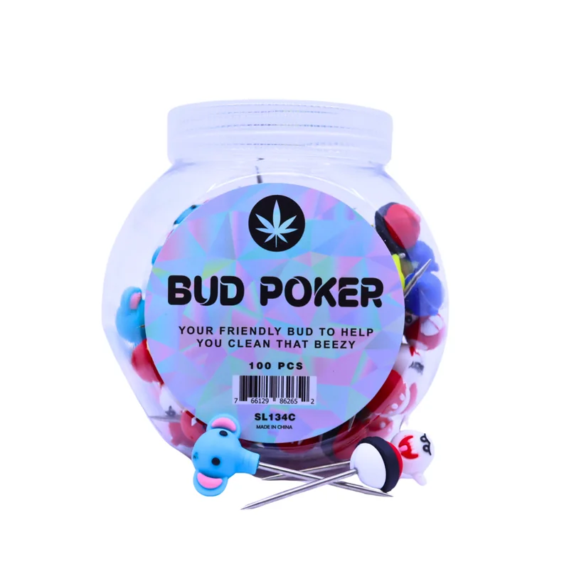 BUD POKER ASSORTED DESIGN 100CT JAR C Elevate your smoking experience with the Bud Poker Assorted Design 100ct Jar. This jar contains 100 bud pokers, each featuring a unique and stylish design. Crafted for convenience and functionality, these bud pokers are perfect for preparing your favorite herbs or tobacco. With assorted designs, you'll always have a fun and practical tool on hand. Add a touch of flair to your smoking sessions with the Bud Poker Assorted Design 100ct Jar.