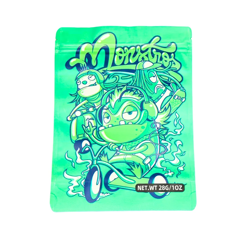 HOLOGRAPHIC MYLAR 28G BAGS 50CT MONSTROS DESIGN Bring bold, eye-catching style to your packaging lineup with the Holographic Mylar 28g Bags – Monstros Design, 50ct Pack . Featuring a shiny holographic finish with a Monstros-inspired theme , these premium-quality bags combine novelty artwork with reliable product storage performance . Each bag holds 28 grams (1 oz) , making it perfect for bulk packaging of flower, edibles, or specialty items. Constructed from smell-proof, resealable, and durable