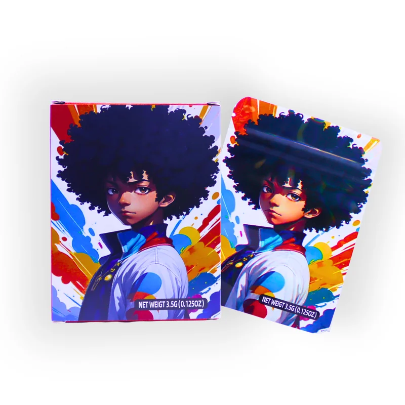 HOLOGRAPHIC MYLAR 3.5G BAGS WITH BOXES 50CT BOOMDOX DESIGN Turn heads on the shelf with the Holographic Mylar 3.5g Bags with Boxes – Boomdox Design, 50ct Pack . These premium-quality bags feature a shiny holographic finish with a bold Boomdox-inspired theme and come with matching display boxes , combining eye-catching artwork with dependable storage performance . Each bag is sized for 3.5 grams (⅛ oz) , making it perfect for flower, edibles, or specialty products. Built from smell-proof, reseala