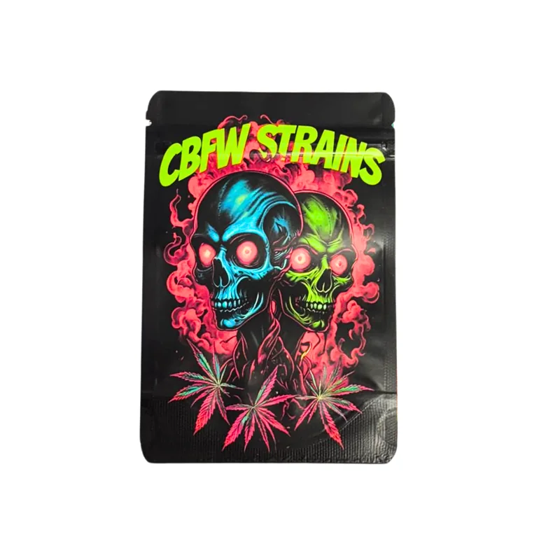 HOLOGRAPHIC MYLAR 7G BAGS 50CT CBFW STRAINS DESIGN Showcase strain-specific branding with the Holographic Mylar 7g Bags – CBFW Strains Design, 50ct Pack . Featuring a premium holographic finish with bold strain-inspired CBFW artwork , these bags combine eye-catching style with dependable storage performance . Each bag holds 7 grams (¼ oz) , making it the perfect size for flower, edibles, or specialty cannabis products . Built with smell-proof, resealable, and durable construction , they protect