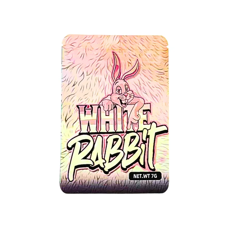 HOLOGRAPHIC MYLAR 7G BAGS 50CT WHITE RABBIT DESIGN Add whimsical style to your packaging lineup with the Holographic Mylar 7g Bags – White Rabbit Design, 50ct Pack . Featuring a shiny holographic finish with a fantasy-inspired White Rabbit theme , these premium-quality bags deliver both novelty shelf appeal and dependable storage functionality . Each bag is sized for 7 grams (¼ oz) , making it perfect for flower, edibles, or specialty cannabis products . Built with smell-proof, resealable, and d