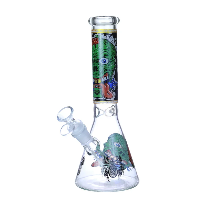 PREMIUM 10" WATERPIPE ZOMBIE SKULL DESIGN (WP-547) Unleash the undead with the PREMIUM 10" WATERPIPE – ZOMBIE SKULL DESIGN (WP-547) . This bold, horror-inspired glass waterpipe features a gritty, high-detail zombie skull graphic—perfect for customers with a darker aesthetic. Crafted from durable borosilicate glass, the beaker base allows for excellent water filtration and stability. The 10-inch size strikes the ideal balance between portability and performance, making it a top choice for daily s