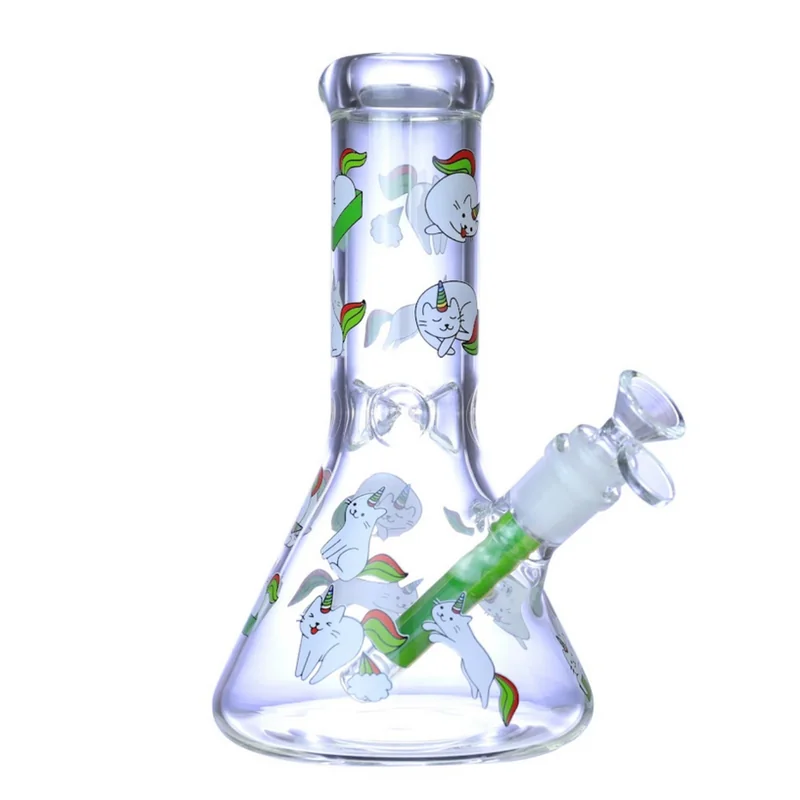 PREMIUM GLASS PIZZA SLICES DESIGN BEAKER 9" WATERPIPE (WP-617) The Premium Glass Unicorn Cat Design Beaker Waterpipe (WP-618) features a classic 9-inch beaker-style shape paired with a whimsical unicorn cat graphic for a fun, magical aesthetic. Crafted from quality glass, this waterpipe provides smooth, dependable performance while standing out as a playful and collectible display piece. Ideal for smoke shops and glass retailers, this beaker waterpipe attracts customers seeking a reliable everyd