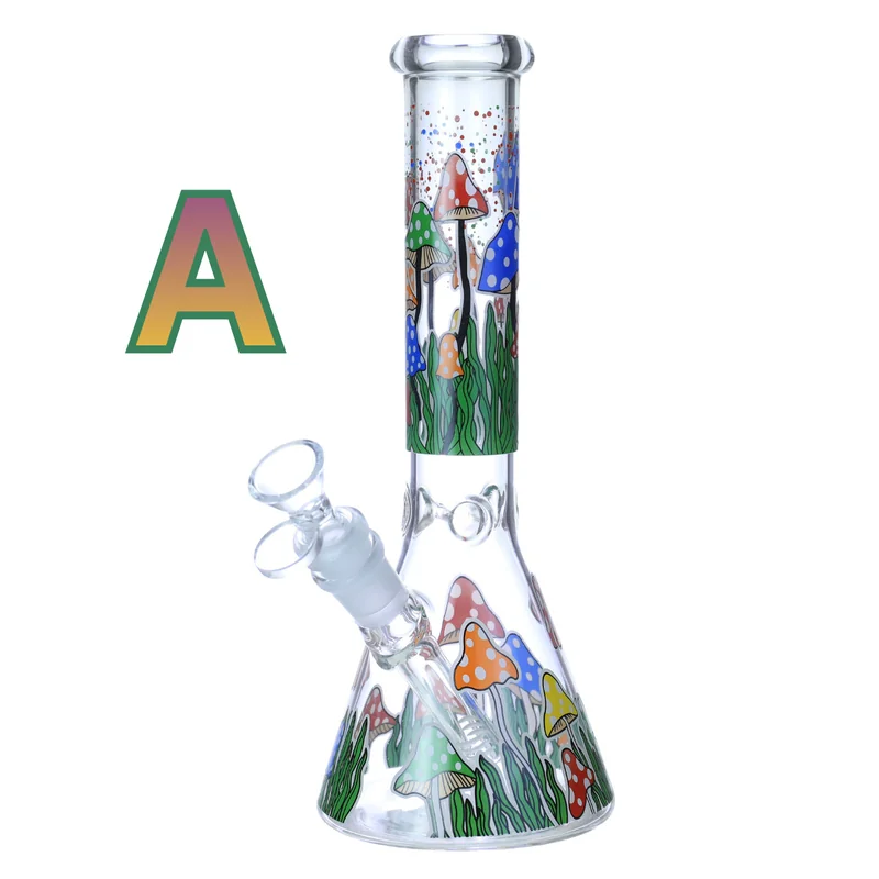 SHROOM BEAKER DESIGN 10" WATERPIPE GLOW IN THE DARK (WP-604) The Shroom Beaker Design 10" Waterpipe (WP-604) combines classic beaker functionality with bold glow-in-the-dark artwork, creating a piece that’s both highly functional and visually striking. Standing at 10 inches , this waterpipe offers excellent stability, increased water capacity, and cleaner, smoother pulls thanks to the traditional beaker base. The durable glass construction supports daily use, while the glow-in-the-dark shroom-th