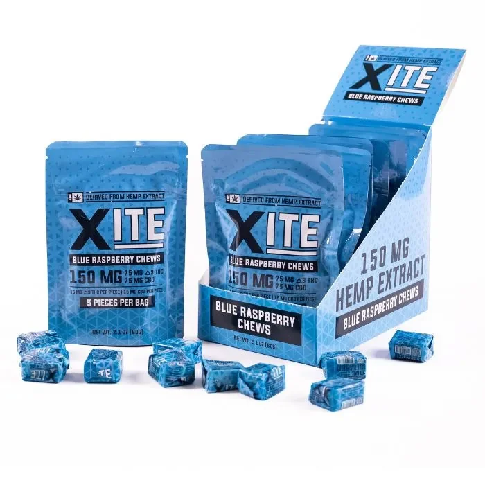 Buy 1 Get 1 Free, ends 1/31Who want a balanced and enjoyable cannabinoid experience. Each display includes 8 bags with 5 mini chews infused with 15mg of Delta-9 THC and 15mg of CBD, offering a smooth, uplifting effect with calming support. Ideal for retail counters, grab-and-go displays, or customers who love fruity edibles, these chews deliver consistent potency and delicious taste in every bite. Flavors: Strawberry Chews – Sweet, juicy strawberry flavor with a smooth candy finish. Blue Raspberry Chews – Tart blue raspberry with a bold, fruity pop. Crafted for quality and taste, Xite Delta 9 Chews provide a well-rounded edible experience that appeals to both new and experienced users. Each bite-sized piece is easy to portion, easy to enjoy, and designed to offer reliable effects without overwhelming intensity. Stock Xite Chews Bins to give your customers a delicious, balanced, and convenient cannabinoid treat they’ll want to return for.