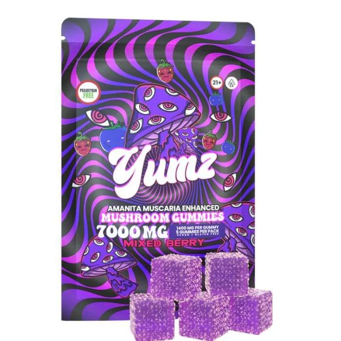 Vape shop owners, elevate your offerings with Yumz Amanita Muscaria Gummies, a product that brings the power of ancient mushrooms to your customers' daily routines. These high-potency 7000mg gummies are made from wild-harvested Amanita Muscaria extract from Lithuania and contain 0.00% psilocybin, making them legal in 49 states. Each package contains 5 gummies, each with 1400mg, providing a total of 7000mg. Our vegan gummies are water-soluble and ibotenic acid-free for a safe and enjoyable experience. To use, Yumz recommends starting with 1 gummy and gradually increasing the dose to personalize the intensity level. Chew the gummy for 30 seconds for faster digestion, and effects may occur within 30 minutes to 2 hours. With Yumz Amanita Muscaria Gummies, your vape shop can offer a magical and unique experience to customers seeking a delightful journey through nature's wonders. Order wholesale today and add these exceptional gummies to your product selection. Yumz Amanita Muscaria Gummies Features: 1 pieces - 1400MG 5 pieces - 7000MG Vegan Water soluble MUSC extract. Ibotenic acid free. Yumz Amanita Muscaria Gummies Flavors: Mango: Tropical sweetness in every bite of Mango gummies. Watermelon: Juicy and refreshing Watermelon gummies. Mixed Berry: A symphony of berries in Mixed Berry gummies.