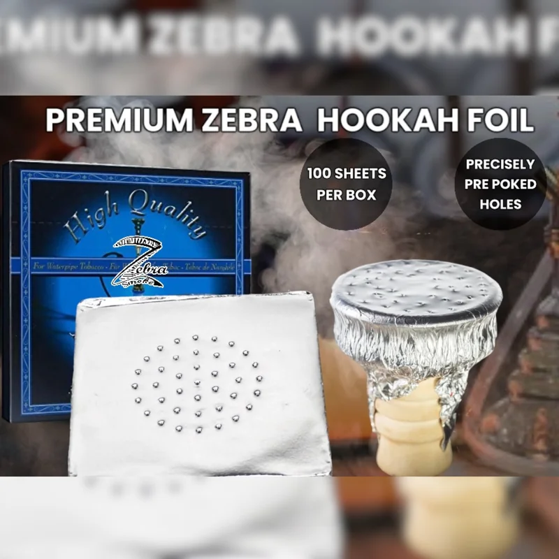 ZEBRA HIGH QUALITY ALUMINIUM PRE-POKED FOIL 100 SHEET DISPLAY OF 24 (LARGE SIZE) The Zebra High Quality Aluminum Pre-Poked Hookah Foil (Large Size) is designed for faster setup, stronger airflow consistency, and reliable heat management. Each sheet comes pre-cut and pre-poked , saving prep time while delivering uniform hole spacing for smooth draws and steady bowl performance. Made from durable, high-grade aluminum , these large-size foils provide wider bowl coverage, making them ideal for bigge