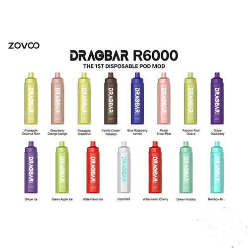 Wholesale/Products/ZOVOO DRAGBAR R6000 6000 Puffs First 3mg Sub-Ohm Rechargable 18mL Disposable w/ Adjustable Airflow *Display of 10*