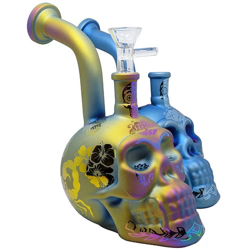 7.5" Electroplated Sand Blasted Sugar Skull Bubbler Water Pipe - with 14M Bowl (MSRP $60.00)
