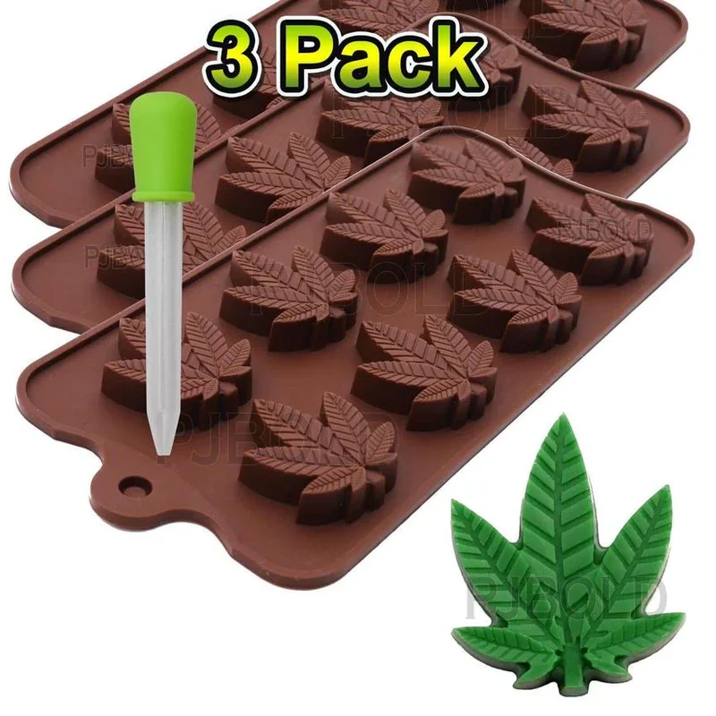 7.4mL Marijuana Hemp Leaf Thin Silicone Candy Mold – 3 Pack | Gummies & Chocolates (96 Molds)