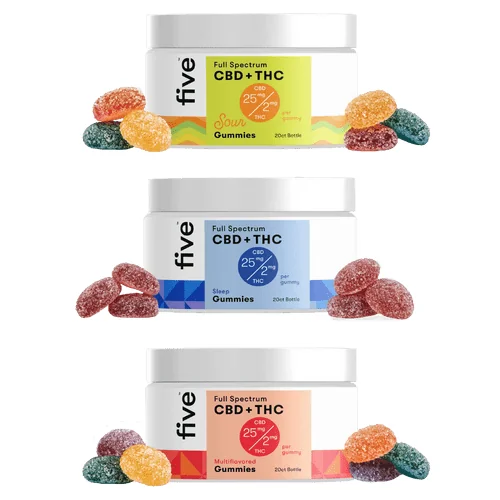 Full Spectrum CBD+THC Gummies by Five CBD 25MG CBD 2MG THC 20ct (Pack of 6) *Drop Ship* (MSRP $29.99 Each)