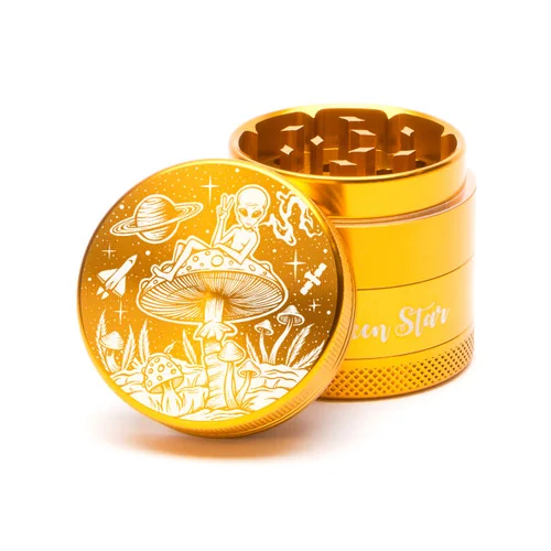 4 Piece 1.5" Alien on Mushrooms Aluminum Grinders By Green Star *Drop Ship* (MSRP $19.99)