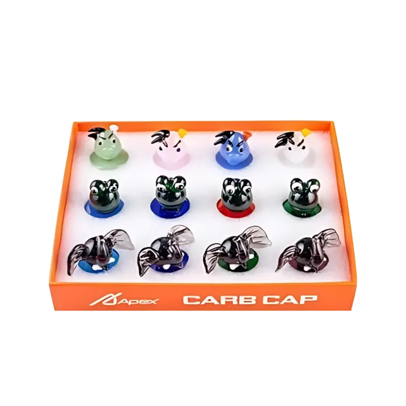 APEX PREMIUM GLASS CARB CAP ASSORTED DESIGNS DISPLAY OF 12 (CCP205)
